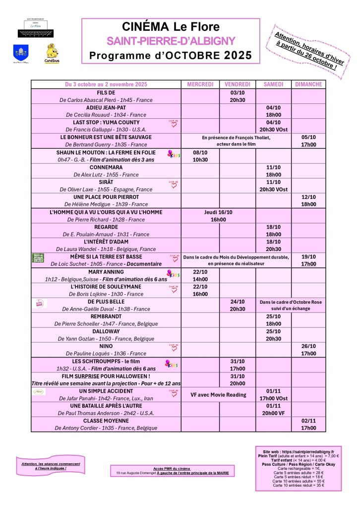 Programme cinéma le Flore – Saint Pierre d’Albigny