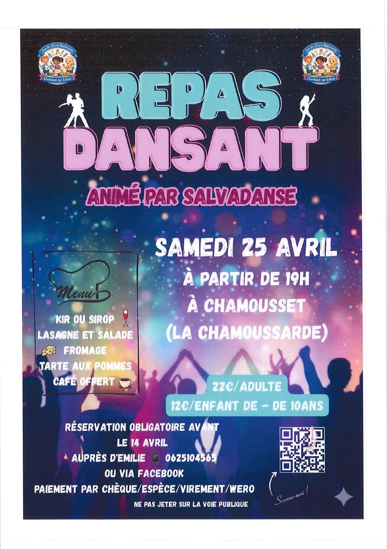 Samedi 25/04 à partir de 19h : Repas dansant à la Chamoussarde